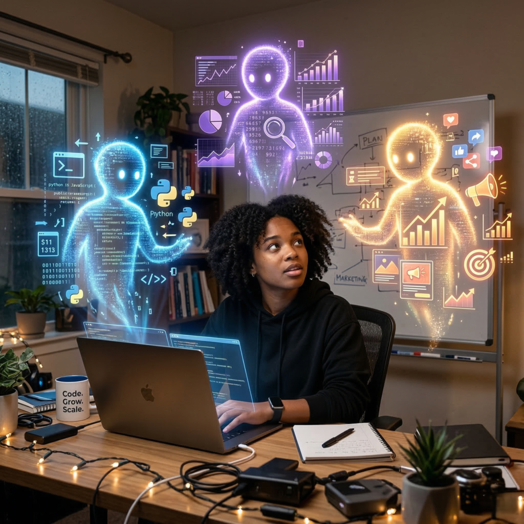 So what does a modern solopreneur’s operation actually look like? Picture a founder who manages product development through AI coding assistants, runs customer support through intelligent chatbots, handles marketing through AI-generated content and automated campaign management, and tracks finances through AI-powered forecasting tools—all from a single dashboard.